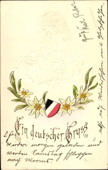 Präge Litho Porträt Kaiser Wilhelm II., deutscher Gruß