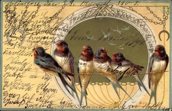 Präge Litho Schwalben, Hufeisen