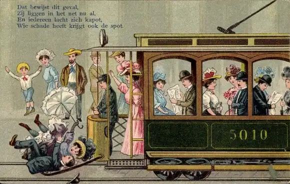 Präge Litho Straßenbahn, Passagiere, Humor
