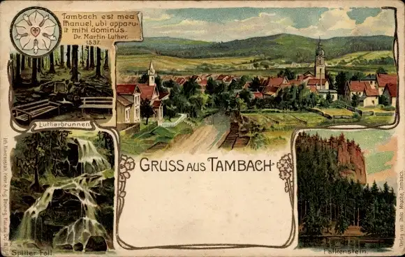 Präge Litho Tambach Dietharz im Thüringer Wald, Lutherbrunnen, Splitter Fall, Falkenstein