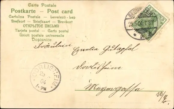 Zustand, siehe Scan, gelaufen, 1904 - ca 14 cm X 9 cm
