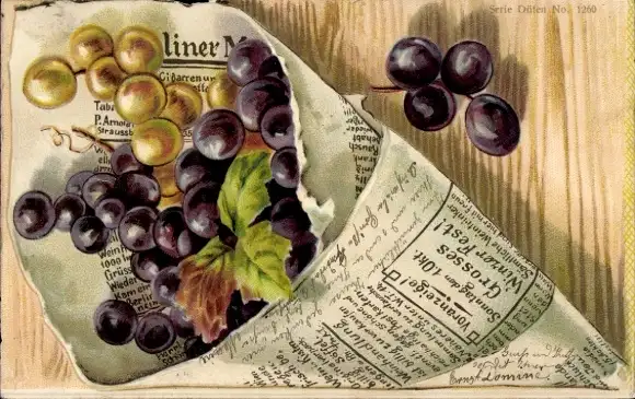 Präge Litho Weintrauben, Zeitungspapier, Winzer Fest
