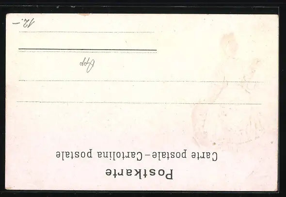 Personenbezogene Daten auf der Rückseite der Karte wurden durch blauen Textmarker unkenntlich gemacht. Die blauen Stellen sind auf die Vorderseite durchgeweicht und wirken sich negativ auf das Postkartenfoto aus