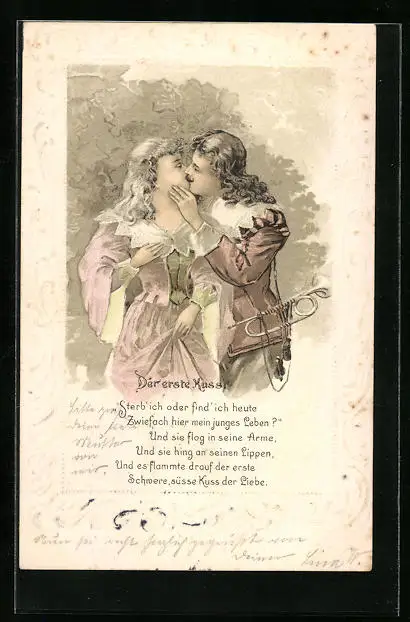 Präge-Lithographie Erster Kuss des Trompeters von Säckingen