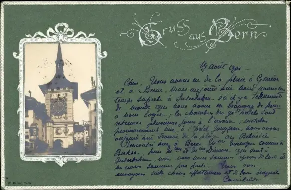 Präge Passepartout Ak Bern Stadt Schweiz, Stadtansicht, Uhr, Turm