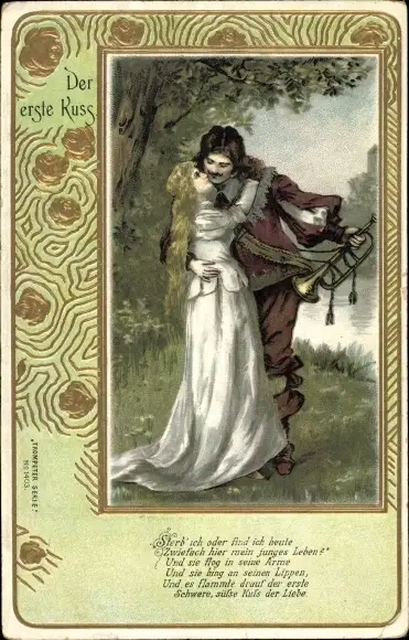 Präge Passepartout Ak Der erste Kuss, Trompeter von Säckingen