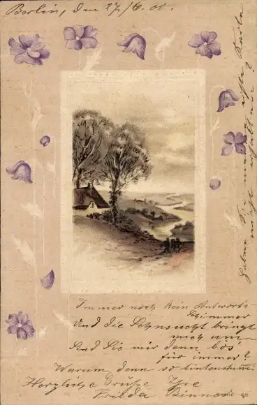 Präge Passepartout Ak Dorfidyll, Blumen