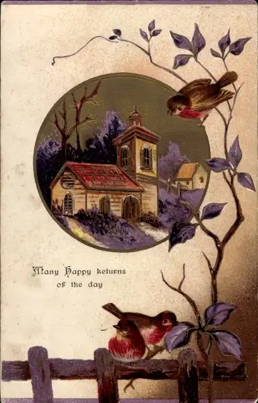 Präge Passepartout Ak Geburtstag Glückwunsch, Vögel