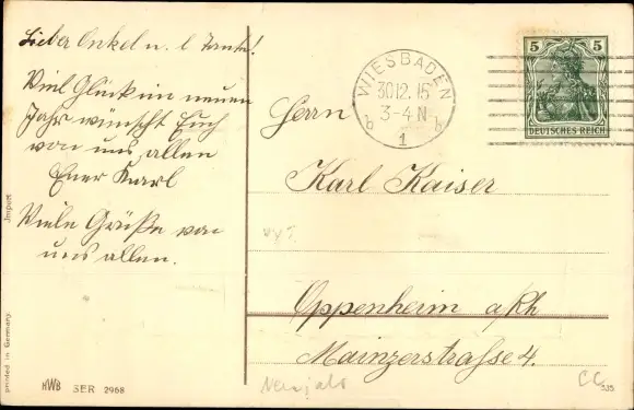 Zustand, siehe Scan, gelaufen, 1915 - ca 9 cm X 14 cm