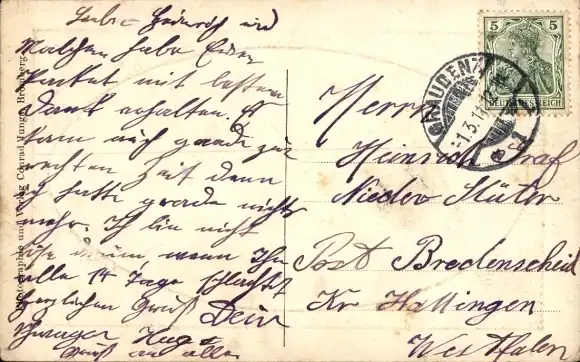 Zustand, siehe Scan, gelaufen, 1911 - ca 14 cm X 9 cm