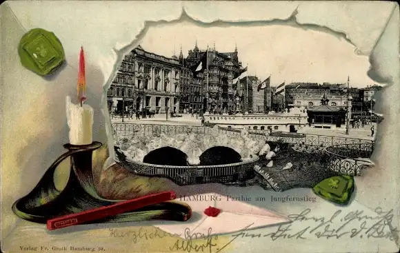 Präge Passepartout Ak Hamburg Mitte Neustadt, Am Jungfernstieg