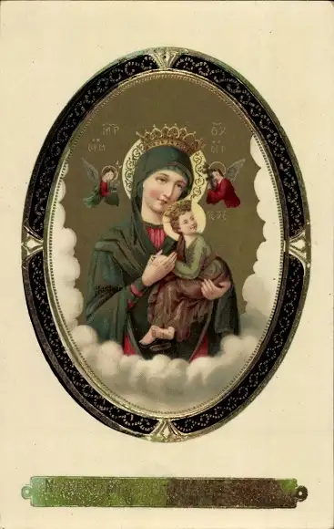 Präge Passepartout Ak Heilige Frau mit Kind, Engel