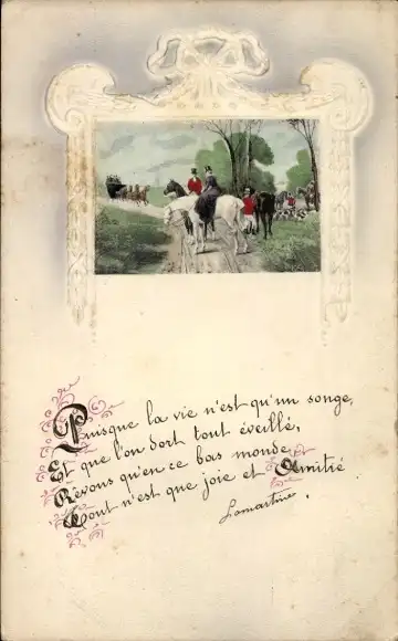 Präge Passepartout Ak Jagdgesellschaft, Reiter