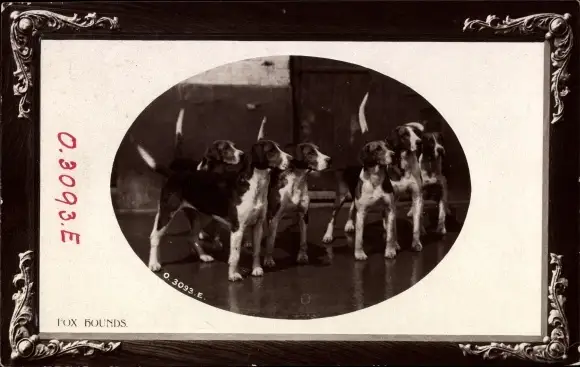 Präge Passepartout Ak Jagdhunde, Fox Hounds
