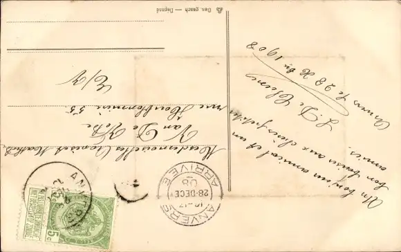 Zustand, siehe Scan, gelaufen, 1908 - ca 14 cm X 9 cm