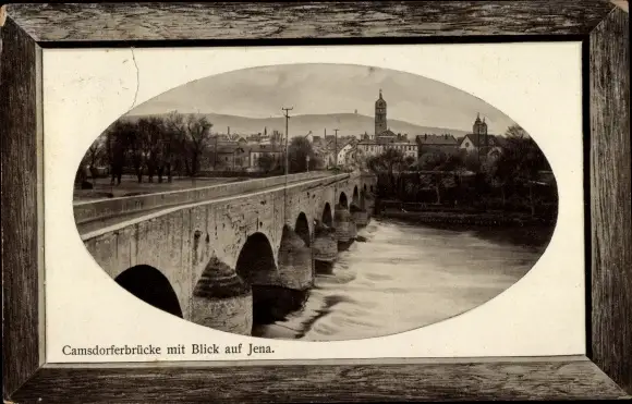 Präge Passepartout Ak Jena in Thüringen, Camsdorfer Brücke zur Stadt