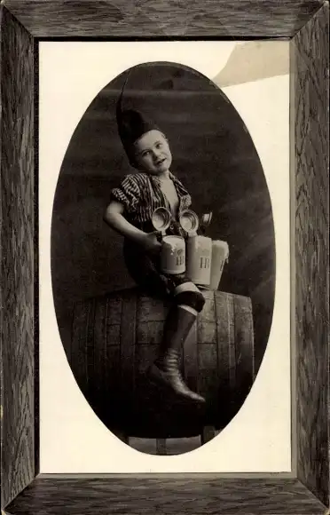 Präge Passepartout Ak Junge-Porträt, Biergläser
