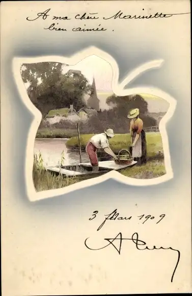 Präge Passepartout Ak Ländlicher Frieden, Ehepaar, Fluss, Ruderboot