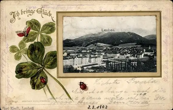 Präge Passepartout Ak Leoben Steiermark, Panorama, Klee, Marienkäfer