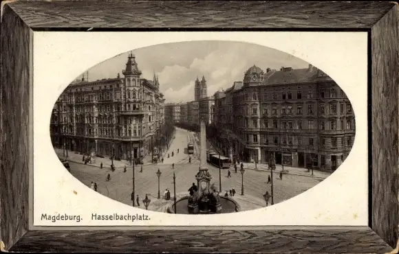 Präge Passepartout Ak Magdeburg, Hasselbachplatz, Straßenpartie