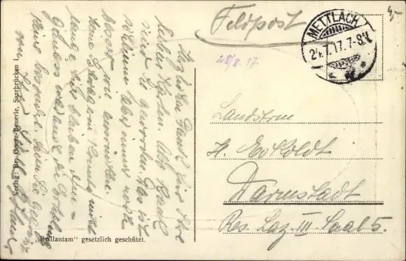 Zustand, siehe Scan, gelaufen, 1917 - ca 14 cm X 9 cm