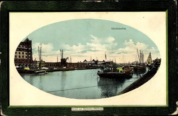 Präge Passepartout Ak Mühlburg Karlsruhe in Baden Württemberg, Rheinhafen