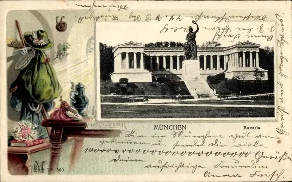 Präge Passepartout Ak München, Bavaria, Ruhmeshalle, Wanderausrüstung, Rucksack