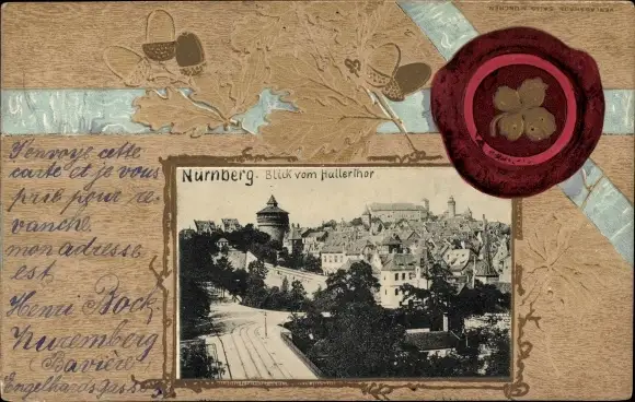 Präge Passepartout Ak Nürnberg in Mittelfranken, Blick vom Hallertor, Glücksklee