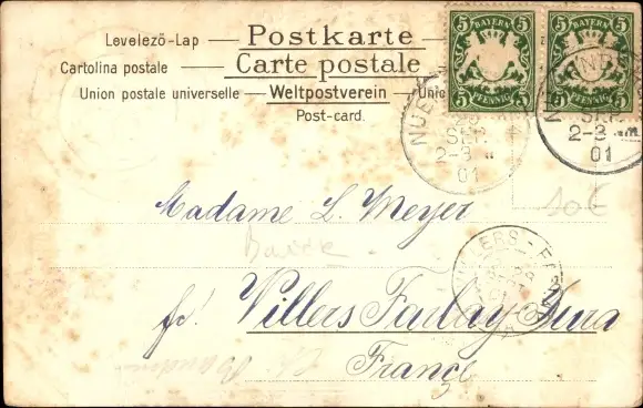 Zustand, siehe Scan, gelaufen, 1901 - ca 14 cm X 9 cm