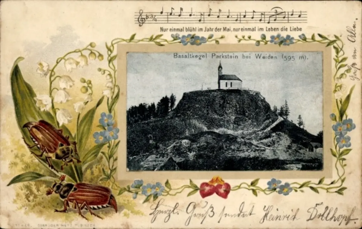 Präge Passepartout Ak Parkstein Oberpfalz, Basaltkegel, Kirche, Maikäfer
