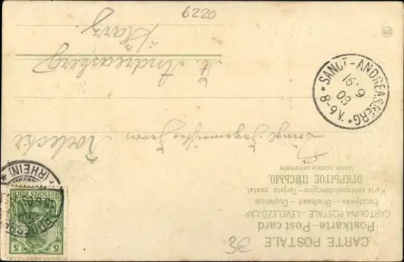 Zustand, siehe Scan, gelaufen, 1903 - ca 14 cm X 9 cm