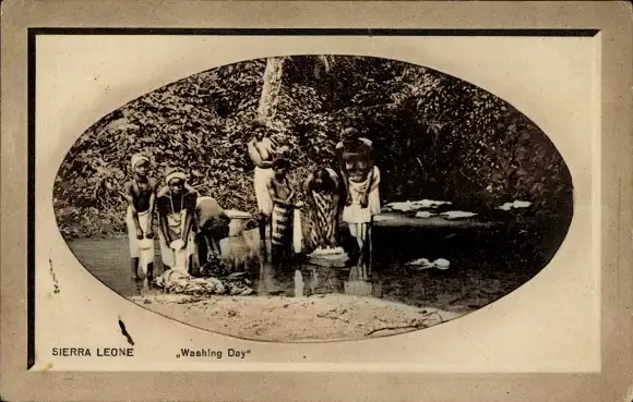Präge Passepartout Ak Sierra Leone, Waschtag