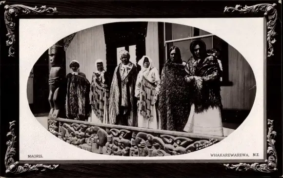 Präge Passepartout Ak Whakarewarewa Neuseeland, Maoris