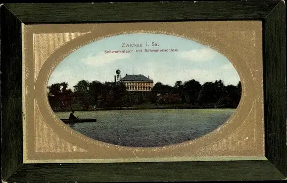 Präge Passepartout Ak Zwickau in Sachsen, Schwanenteich, Schwanenschloss