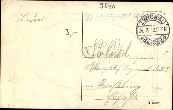 Zustand, siehe Scan, gelaufen, 1913 - ca 14 cm X 9 cm