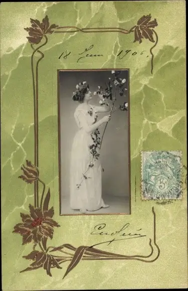 Präge Passepartout Foto Ak Standportrait einer Frau