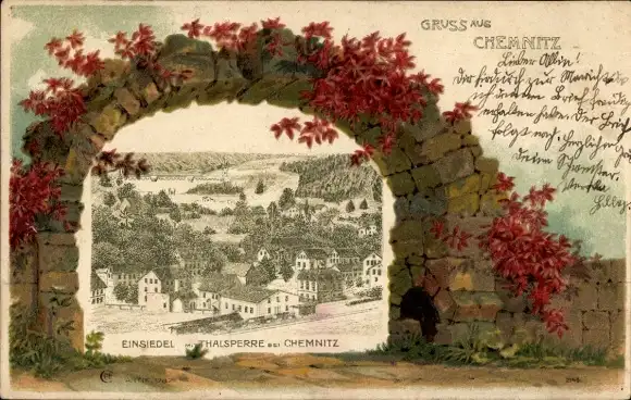 Präge Passepartout Litho Einsiedel Chemnitz, Talsperre