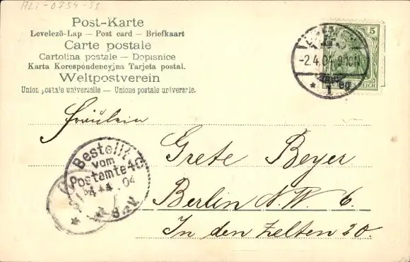 Zustand, siehe Scan, gelaufen, 1904 - ca 14 cm X 9 cm