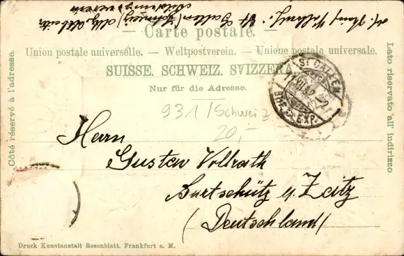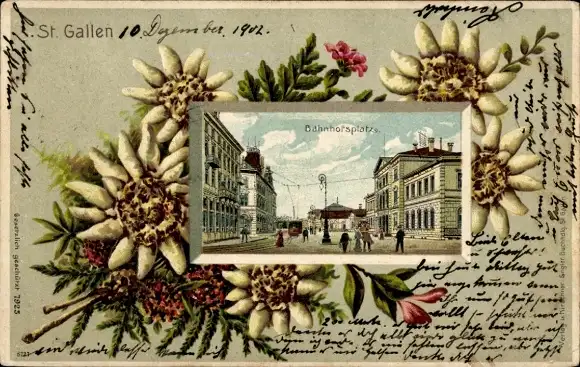 Präge Passepartout Litho Sankt Gallen Stadt Schweiz, Bahnhofsplatz, Edelweiß