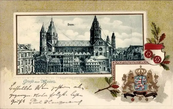 Präge Passepartout Wappen Ak Mainz am Rhein, Dom