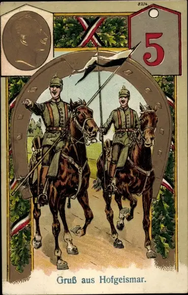 Präge Regiment Litho Hofgeismar in Nordhessen, Hufeisen, Reiter, Regiment 5, Kaiser Wilhelm II.