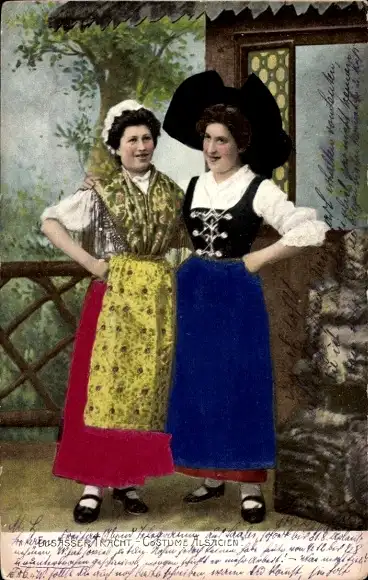 Präge Stoff Ak Elsässer Tracht, Elsässerinnen