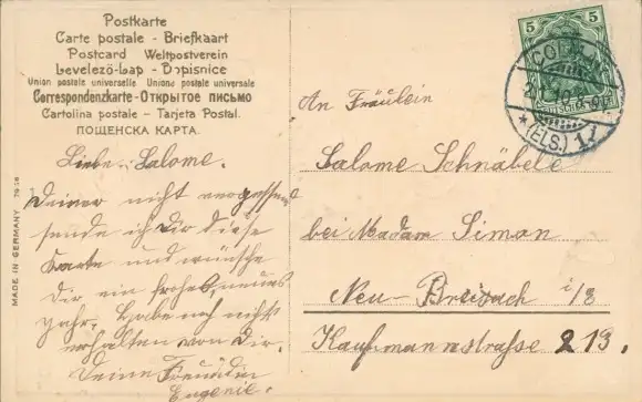 Zustand, siehe Scan, gelaufen, 1910 - ca 9 cm X 14 cm