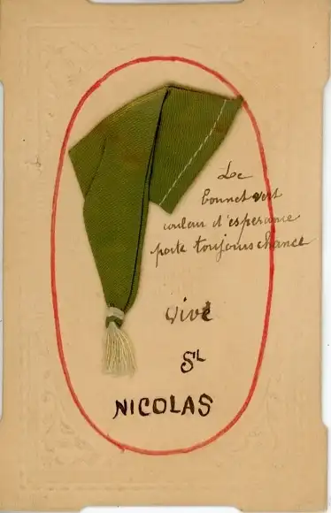Präge Stoff Ak Sankt Nicolas, Mütze, Kitsch