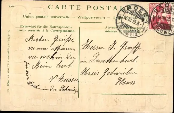 Zustand, siehe Scan, gelaufen, 1913 - ca 14 cm X 9 cm