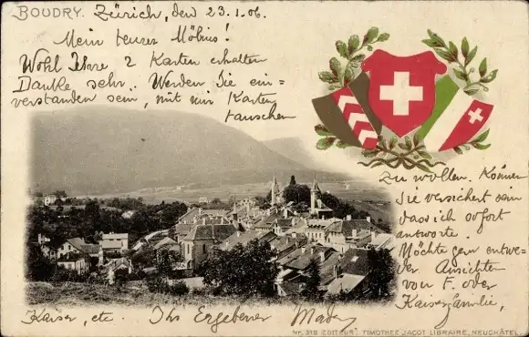 Präge Wappen Ak Boudry Kanton Neuenburg, Gesamtansicht
