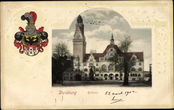 Präge Wappen Ak Duisburg im Ruhrgebiet, Rathaus