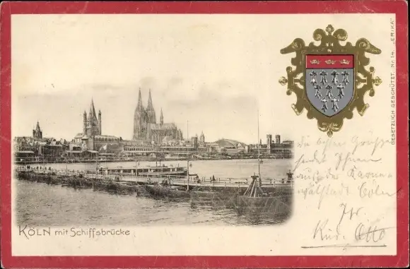 Präge Wappen Ak Köln am Rhein, Fluss mit Schiffsbrücke