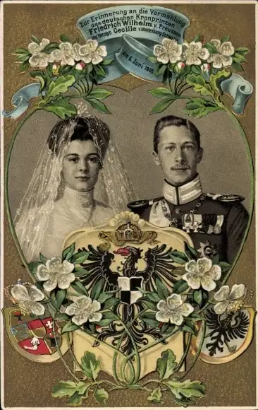 Präge Wappen Ak Kronprinz Wilhelm von Preußen, Kronprinzessin Cecilie, Hochzeit