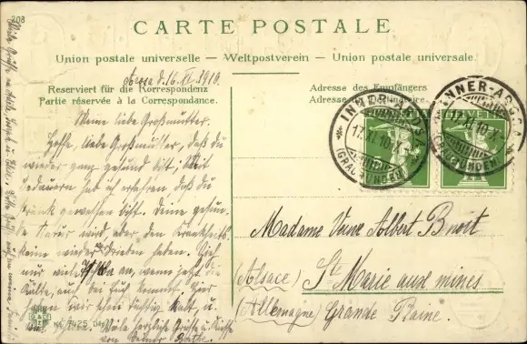 Zustand, siehe Scan, gelaufen, 1910 - ca 14 cm X 9 cm